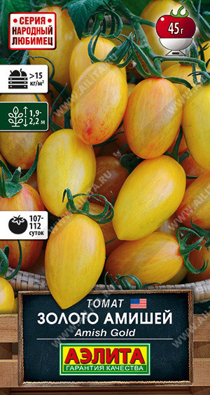 Настоящая золотая гирлянда! Гроздья желтых, словно светящихся плодов-сливок делают этот томат одним из фаворитов! Раннеспелый сорт (107-112 суток от всходов до сбора урожая) был создан селекционером Джеффом Доусоном на основе потрясающего томата Амиш паста (старинного сорта секты Амишей из США) и ультрасладкого гибрида Sungold. Растения индетерминантные, высотой 1,9-2,2 м. Помидоры медово-сладкие, с гармоничной кислинкой и богатым послевкусием, массой 35-45 г. Отличный выбор для салатов и сэндвичей! Более мелкие плоды пригодны для цельноплодной консервации. Урожайность более 15 кг/м2 в теплице. Отлично транспортируется и хранится.