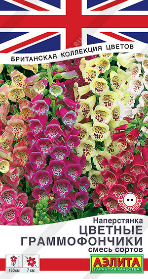 Двухлетние. Красочная смесь эффектного величественного двулетника. Ее особенностью является горизонтальное расположение крупных цветков относительно побегов, что придает растению неповторимую декоративность. Наперстянка пластична к условиям освещенности. Приспосабливается к полутени, но цветки мельчают. Предпочитает рыхлые почвы, при застое весенних вод цветение может не наступить. Ввиду морозостойкости укрытие на зиму не требуется, но при мульчировании лучше развивается и богаче цветет. Высота прямостоячих побегов может превышать 130-150 см, цветки диаметром 6-7 см. Все виды наперстянок ядовиты, уход за растением проводите в перчатках!