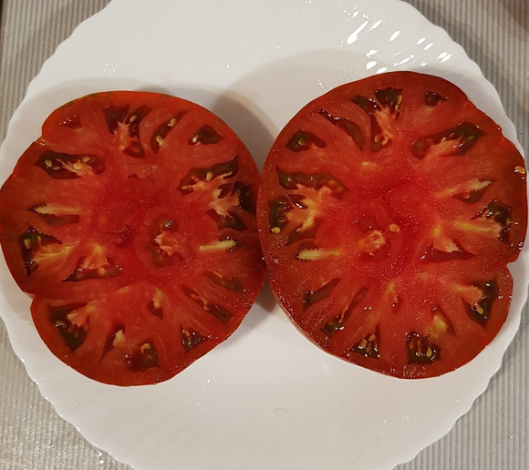 Индет, в теплице 1.8м.Среднеспелый. Очень нарядные, переливающиеся всеми цветами бифы 300-400гр.отличного сбалансированного вкуса с выраженной сладостью. Отличная урожайность и длительное плодоношение.