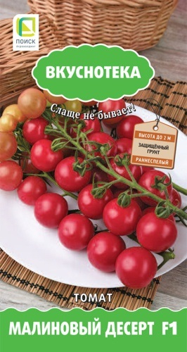 Черри-пальчики великолепного сладкого вкуса богатые ликопином. Обильный и неприхотливый раннеспелый гибрид для выращивания в открытом и защищенном грунте. Период от всходов до начала созревания 100-105 дней. Растение полудетерминантного типа роста, требует подвязки и формирования. Устойчив к фузариозному увяданию, вирусу мозаики томата. Плоды цилиндрической формы, малиновой окраски, гладкие, плотные, массой 20-30 г, собраны в простые и сложные кисти по 15-30 штук, не растрескиваются и не осыпаются. Обладают сладким десертным вкусом с фруктовыми нотками. Идеальны для свежего потребления, декорирования блюд и консервирования.