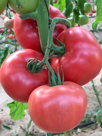 Гибрид среднеспелый, индетерминантныйLSL типа. От всходов до созревания 105-115 дней. Растение компактное. Первая кисть с 3-4 плодами, закладывается над 9-11 листом. Плод плоскоокруглый, слаборебристый, многогнёздный, насыщенно розовой окраски, без зелёного пятна у плодоножки, массой 250-350 г. Хорошо переносит высокие и пониженные температуры воздуха. Вкус отличный, товарность и транспортабельность хорошие. Плоды не теряют потребительских свойства в течение 45 дней. Устойчив к вирусу томатной мозаики (TоMV), кладоспориозу (Ff), фузариозу (Fol 1-2), вертициллёзу (Va,Vd), толерантен к вирусу бронзовости томата (TSWV), вирусу желтого скручивания листьев (TYLCV) и к галловым нематодам (Mi, Mа). Используется для потребления в свежем виде. Рекомендуется для выращивания в теплицах и открытом грунте с подвязкой к опоре. Схема посадки 70х40 см. Урожайность свыше 30 кг/м.