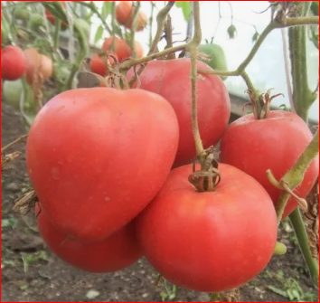 Томаты имеют сердцевидную форму, розово-малинового цывета. Они отличаются ровной формой, крупными размерами и превосходным вкусом. Кроме того, эти томаты обладают хорошей товарностью. Мякоть плодов нежная, арбузная, мясистая и достаточно плотная. Она сладкая и вкусная. Кожица тонкая. В плодах немного семенных камер и семян. Это ранний, детерминантный сорт томата, который отличается высокой урожайностью. Кусты достигают высоты около 70 см. ????Плоды созревают примерно на три недели раньше, чем у среднеспелых сортов. Средняя масса помидор составляет около 350-400 г. Однако на нижних кистях могут вырастать более крупные плоды, достигающие веса 600-700 г.