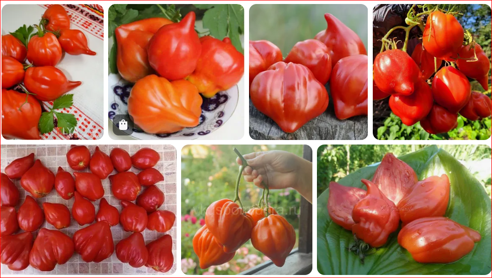 Необычная форма плодов! Отлично подходит для свежего потребления и переработки. Индетерминантный, среднеспелый сорт. Плоды имеют оригинальную фактурную поверхность и гребневидную форму, каждый плод обязательно заканчивается милым загнутым носиком. Ярко-красные, среднесочные, с незначительными пустотами у отдельных плодов, кожица плотная, без трещин. Мякоть имеет хороший вкус, внутри плотная, достаточно сочная, с кисло-сладким освежающим вкусом. Плоды хорошо хранятся продолжительное время после сбора. Сорт урожайный, плодоношение растянутое. Средний вес томатов 150-200 г.