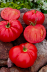 Плоды слабо-ребристые. Форма разная, от округлой с ребрышками до плоскоокруглой. Сами томаты розового цвета, массой 300 грамм, очень красивые. Сорт отличается отличной урожайностью и устойчивостью к заболеваниям томатов. У томата Сланкардс плоды сладкие, плотные, мясистые.