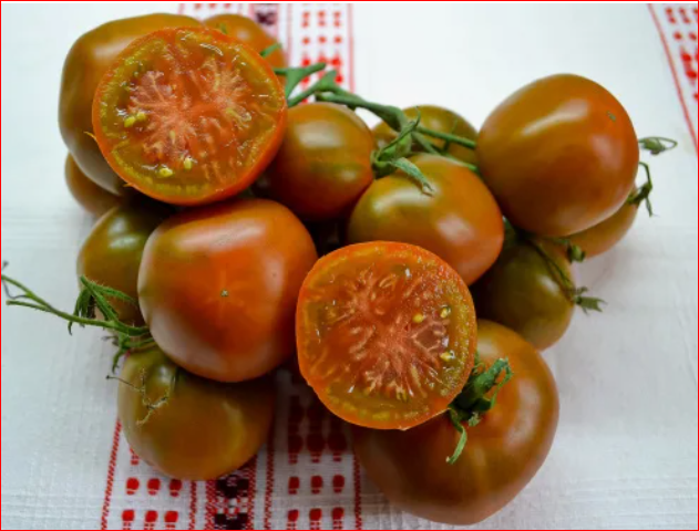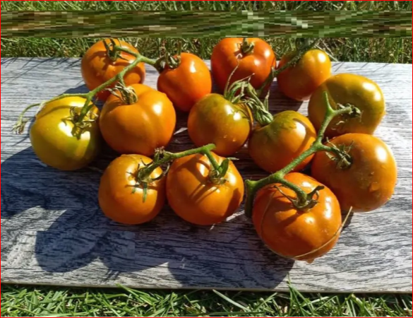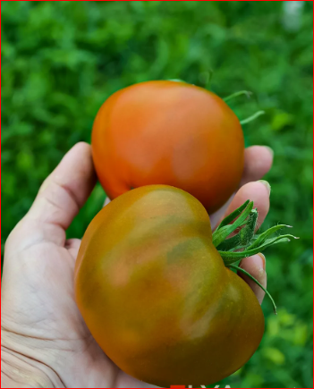 настоящая историческая реликвия, очень интересный сорт, с более чем 130 летней историей! Плоды яркого охристого оттенка, насыщено бронзового цвета с золотисто-зелёным отливом и тёмно зелёными плечиками, весом до 200 грамм, потрясающе выглядят, особенно в контрасте с другими сортами. Не менее примечателен и вкус, в котором преобладает яркая томатная нотка с великолепным балансом между сладостью и кислинкой, а также неожиданным фруктовым послевкусием. Ближе к кожице мякоть в оранжевых тонах иногда с небольшими розовыми прожилками и малиновая ближе к середине плода. Хорошая консистенция. (Thorburn's Terra Cotta, USA)