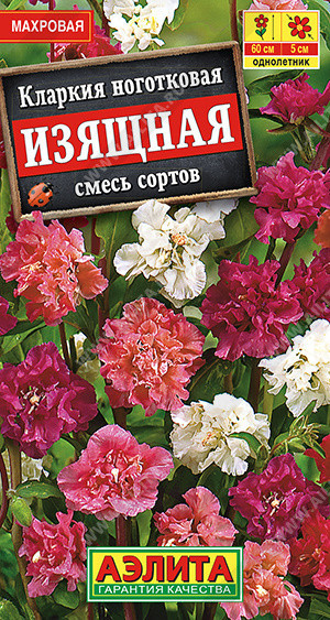 Обильноцветущий, неприхотливый летник с махровыми цветками. Стебли прямостоячие, крепкие, высотой до 60 см. Цветки Ø 3-5 см располагаются в пазухах листьев. Цветение раннее и продолжительное. Растения используются для групповых посадок в цветниках, озеленения балконов и в мавританском газоне. Подходят для срезки – в воде у кларкии распускаются все бутоны.