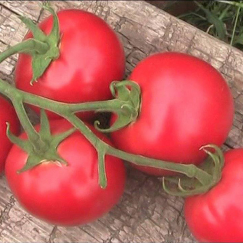 Высокоурожайный. Крупноплодный. Отличный вкус. Ярко-красные плоды отличного вкуса. Индетерминантный среднеспелый гибрид для выращивания в защищенном грунте. Период от всходов до начала созревания 110-115 дней. Растение высокорослое, требует подвязки и формирования в 1-2 стебля. В кисти 4-5 плодов. Плоды плоскоокруглые, выравненные по размеру и форме, плотные, гладкие, ярко-красной окраски, массой 280-300 г, мясистые, с нежной, сочной мякотью насыщенного вкуса. Один из лучших салатных гибридов, подходит для получения томатного сока и переработки на томатопродукты.
