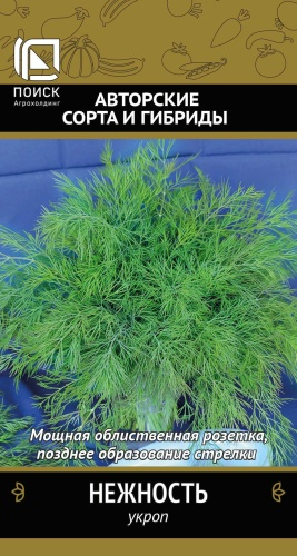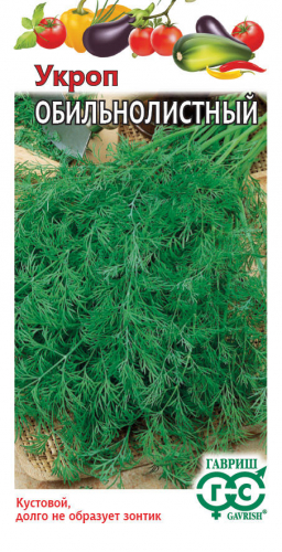 Уникальный сорт укропа, формирующий мощный облиственный куст. Листья крупные, длина 28-36 см, ширина 30-36 см, зелёные с восковым налетом. Растение долго не цветёт, образует мощные пушистые ветви. Хорошо подходит для подзимнего посева. Молодые растения переносят весенние возвратные заморозки. Урожай зелени составляет 2,8-6,0 кг/м2. Рекомендуется для использования в свежем виде, сушки, соления, замораживания. Семена используются в качестве специи при засолке и мариновании.