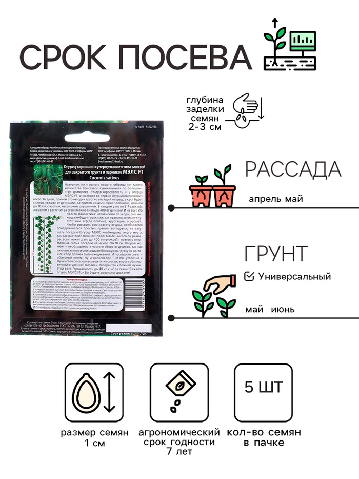 Семена Огурец "Мэлс" F1 - это настоящий подарок для любителей свежих овощей. Этот ультраранний сорт огурцов порадует вас своей скоростью роста - всего 36 дней от посева до первого урожая!Корнишон "Мэлс" F1 - это идеальный выбор для тех, кто любит сладкие и сочные огурцы. Благодаря своей партенокарпической форме, этот сорт огурцов будет радовать вас урожаем на протяжении всего летнего сезона.Семена "Мэлс" F1 - это не просто огурцы, это настоящее произведение искусства среди растений. Их ярко-зеленые листья и сочные плоды обещают не только приятный вкус, но и визуальное удовольствие.В упаковке вы найдете 5ук семян, которые помогут вам вырастить прекрасный урожай. Вам не придется беспокоиться о том, что выращивание огурцов может быть сложным процессом - семена "Мэлс" F1 легко выращивать даже начинающим садоводам.