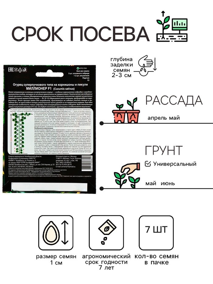 Очень урожайный суперпучковый гибрид женского типа цветения для выращивания в открытом грунте, весенних теплицах, тоннелях. Ветвление ограничено. Зеленцы корнишонного типа, крупнобугорчатые, белошипые, длиной 8-12 см, очень высоких засолочных качеств. Гибрид «запрограммирован» на интенсивное производство короткоплодных (до 5-6 см) пикулей и мини-корнишонов. Суперпучкового типа завязей, до 10ук в узле, при этом налив плодов в узлах последовательный. При хорошем опылении почти все завязи становятся зеленцами, что даёт потанциально высокую урожайность. Устойчив к оливковой пятнистости, вирусу обыкновенной огуречной мозаики, толерантен к мучнистой и ложной мучнистой росе.