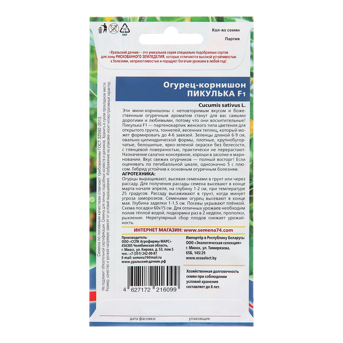 Эти мини-корнишоны с неповторимым вкусом и божественным огуречным ароматом станут для вас самыми дорогими и любимыми, потому что они восхитительные! Пикулька F1 — партенокарпик женского типа цветения для открытого грунта, тоннелей, весенних теплиц, который может формировать до 4-6 завязей. Зеленцы длиной 6-9 см, овально-цилиндрической формы, плотные, крупнобугорчатые, белошипые, ярко-зеленой окраски без белесости, с глянцевой поверхностью, практически не перерастают. Назначение салатно-консервное, хороши в засолке и мариновании. Вкус свежих огурчиков — полный восторг! Если оценивать по пятибалльной шкале, однозначно 5 с плюсом. Гибрид устойчив к основным огуречным болезням.
