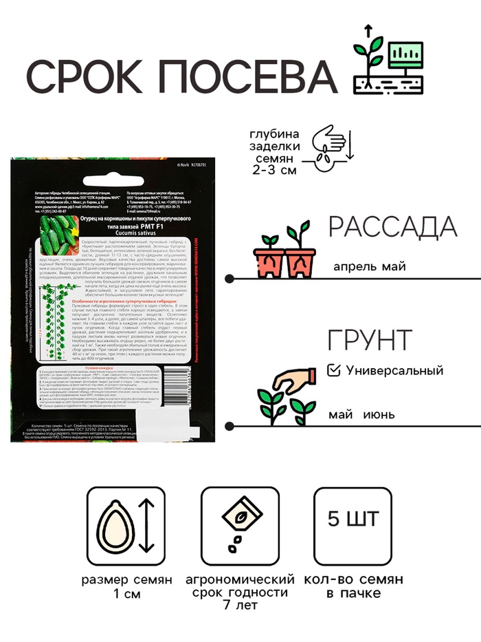 Скороспелый партенокарпический гибрид с букетным расположением завязей отличается дружным плодоношением и массированной отдачей урожая. Растение украшено зелёными бугорчатыми хрустящими корнишонами длиной 11–13 см.