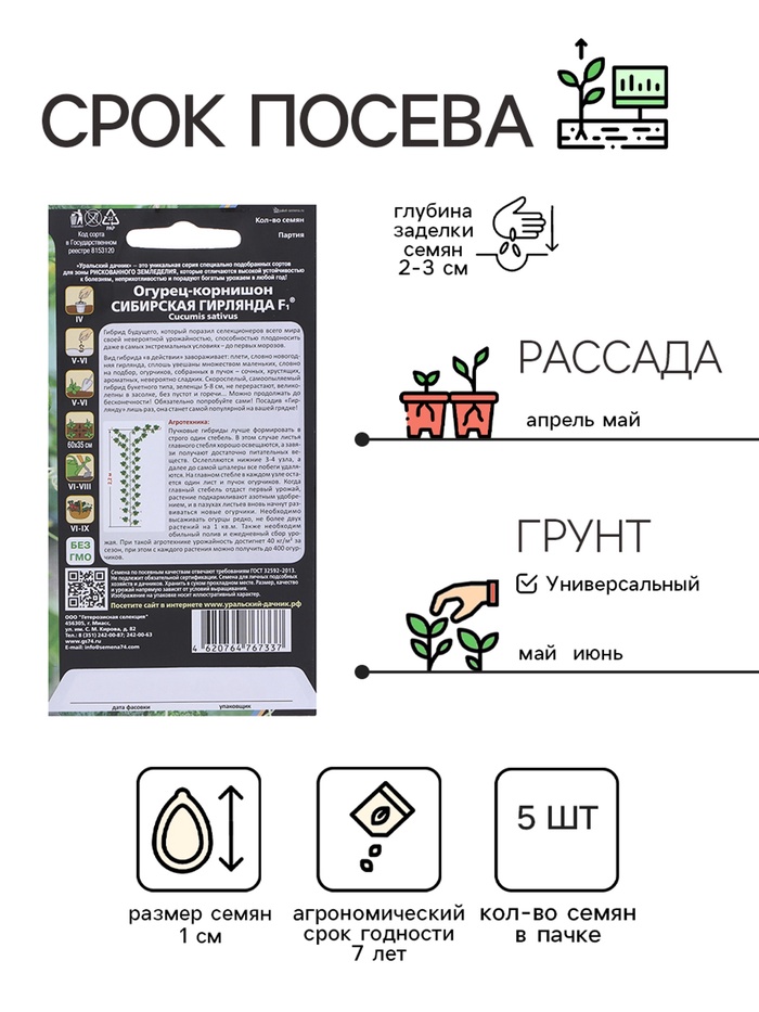 Семена Огурец "Сибирская Гирлянда" F1 скороспелый, партенокарпический, 5