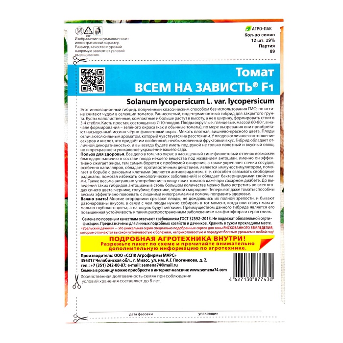 Семена томата "Всем на зависть" F1 - это высококачественный гибрид томатов, который отличается отличным вкусом, высокой урожайностью и устойчивостью к болезням. Каждый пакет содержит 12ук семян, которые гарантированно приведут к выращиванию здоровых и сильных растений.Этот сорт томатов идеально подходит для выращивания как в теплицах, так и на открытом грунте. "Всем на зависть" F1 является одним из самых популярных сортов томатов среди огородников и садоводов благодаря своей урожайности и отличному вкусу.Томаты "Всем на зависть" F1 имеют плотную мякоть и сладковатый вкус, а их форма и размер делают их идеальными для использования в кулинарии. Этот сорт томатов обладает высокой устойчивостью к болезням, что позволяет получать стабильный урожай даже при неблагоприятных условиях.