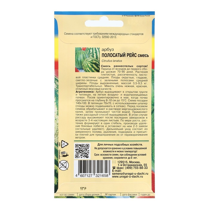 Арбуз выращивают в открытом грунте и теплицах, на легких воздухо- и водопроницаемых почвах. Посев ориентировочно в мае, когда почва прогреется на глубину 8-10 см до 15°С. Схема посадки 140х100. В теплицах 70х70, с использованием шпалер (плоды можно подвешивать в сетках). Перед посевом семена обрабатывают в растворе марганцовокислого калия, затем промывают чистой водой. Применяют также рассадный способ выращивания. В этом случае рассаду высаживают после последних заморозков в возрасте 3-4 настоящих листьев. По мере роста, растения формируют в один стебель, производя удаление боковых побегов и оставляют на нем 2-3 завязи (остальные удаляют).