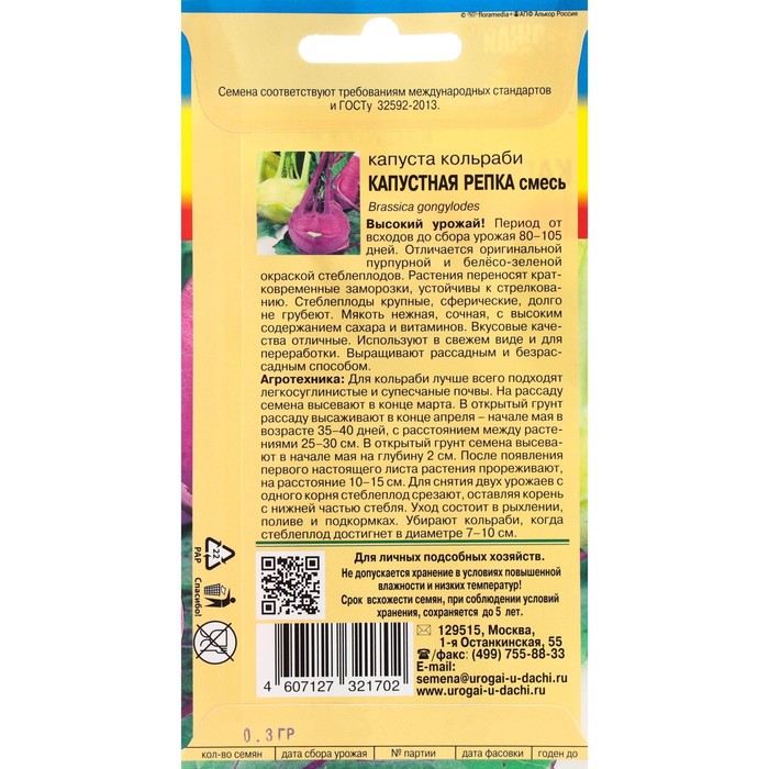 Период от всходов до сбора урожая 80-105 дней. Отличается оригинальной пурпурной и белёсо-зеленой окраской стеблеплодов. Растения переносят кратковременные заморозки, устойчивы к стрелкованию. Стеблеплоды крупные, сферические, долго не грубеют. Мякоть нежная, сочная, с высоким содержанием сахара и витаминов. Вкусовые качества отличные. Используют в свежем виде и для переработки. Выращивают рассадным и безрассадным способом.