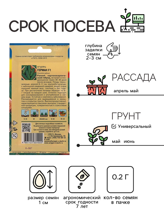 Семена огурца "Герман", F1 - это высококачественный гибрид огурцов, который обладает отличными вкусовыми качествами и высокой урожайностью. Этот сорт огурцов является одним из самых популярных среди огородников и садоводов.Каждый пакет содержит семена, которые гарантированно приведут к выращиванию здоровых и сильных растений. Семена "Германа", F1 идеально подходят для выращивания как в теплицах, так и на открытом грунте.Огурцы "Герман", F1 имеют прекрасный вкус и аромат, а их форма и размер делают их идеальными для использования в кулинарии. Этот сорт огурцов имеет высокую устойчивость к болезням и вредителям, что позволяет получать стабильный урожай даже при неблагоприятных условиях.Выращивание огурцов "Герман", F1 - это простой и увлекательный процесс, который позволяет получить свежие и вкусные овощи прямо из своего сада.