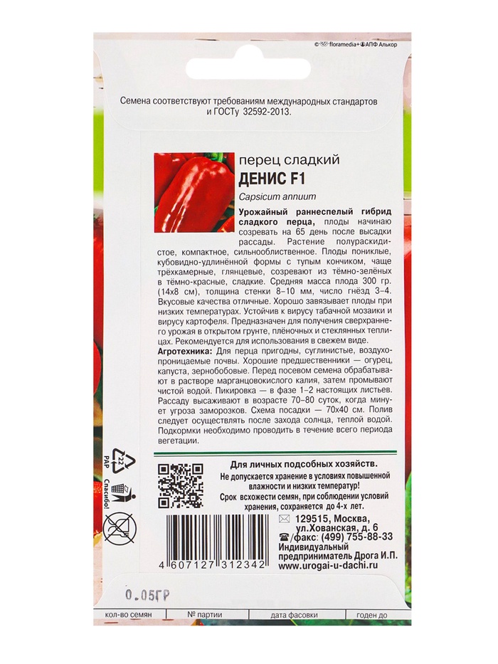 Количество семян, г: 0,05