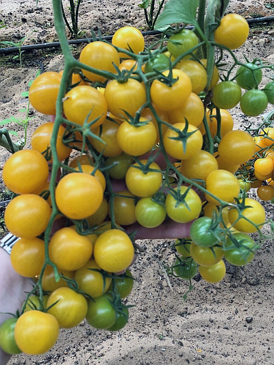 Томат черри Ясик F1 - ранний гибрид для защищенного грунта, индетерминантный, кистевой, LSL типа. От всходов до первого сбора плодов 90–95 дней. Растение среднеоблиственное, формируют в один или два стебля. Первое соцветие формируется над 9–11 листом. Кисть простая, плотная, с 8–15 плодами. Плоды округлой формы, желтые, гладкие, массой 20–30 г, среднеплотные, не растрескиваются. Уборку урожая проводят как кистями, так и отдельными плодами. Вкусовые качества отличные. Транспортабельный. Вкусовые и товарные качества плодов отличные, сохраняются без изменения потребительских свойств в течение 25–30 дней. Томат черри для защищенного грунта LSL типа Ясик F1 устойчив к вирусу томатной мозаики (ToMV). Используется для потребления в свежем виде и цельноплодного консервирования. Рекомендуется для выращивания в защищенном и в открытом грунте с подвязкой к опоре.