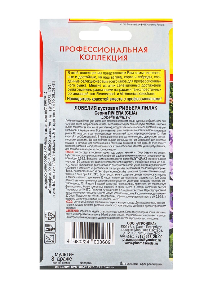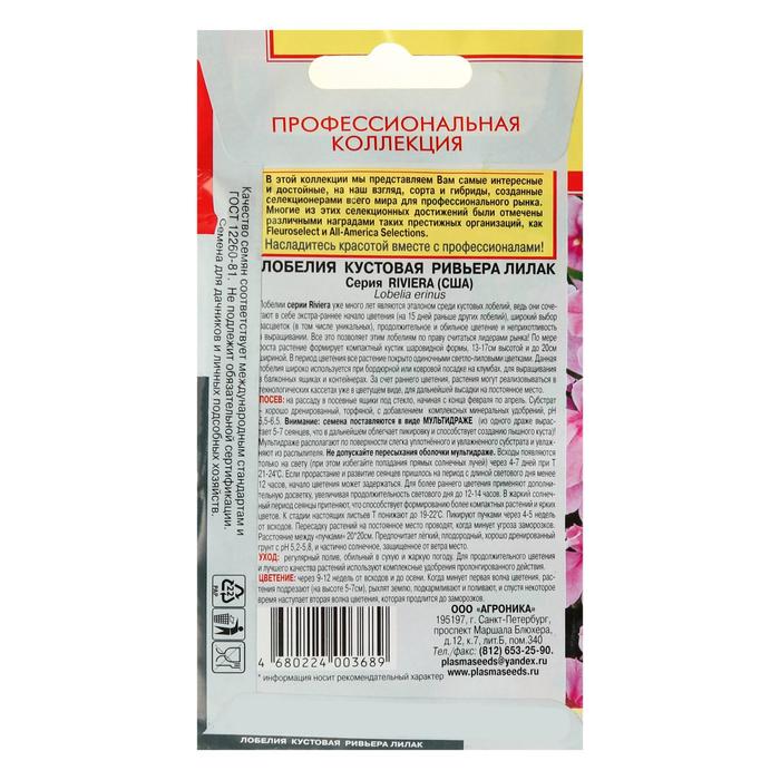 Семена Лобелия куст. "Ривьера Лилак", драже, 8 шт