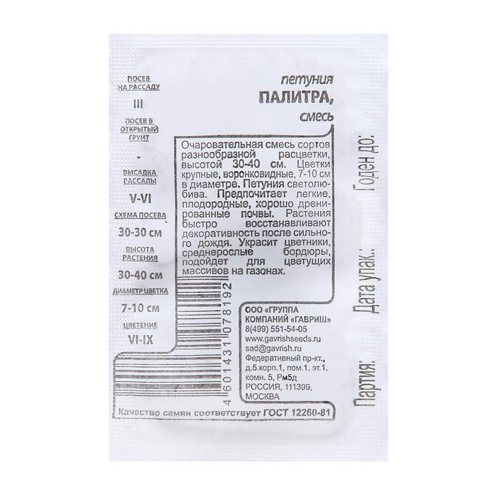 Семена Петуния "Палитра", б/п, смесь 0,05 г б/п