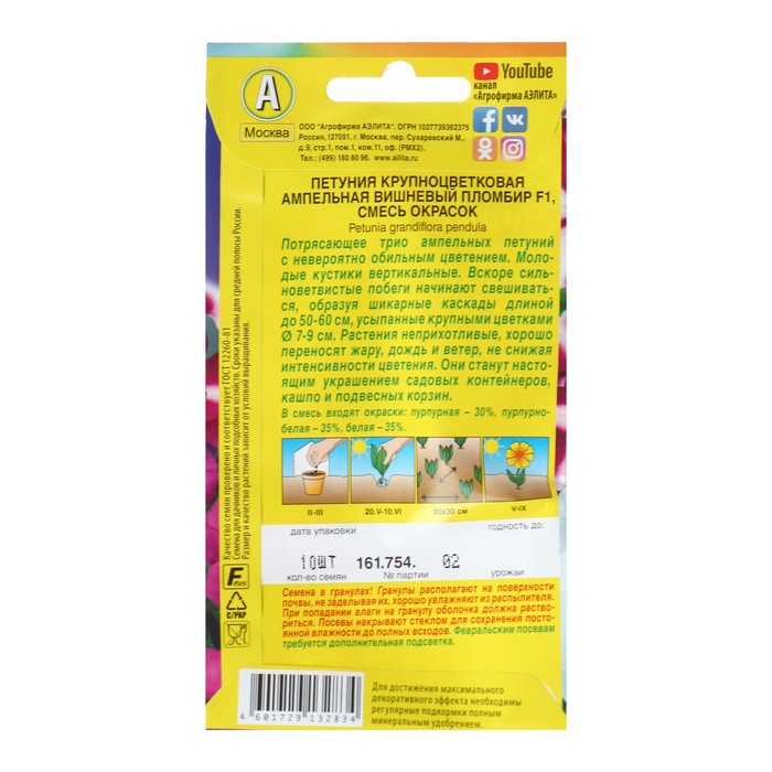 Семена цветов Петуния «Вишневый пломбир», F1, крупноцветковая, ампельная, смесь окрасок, 7 шт., «Агрофирма АЭЛИТА»