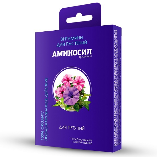 Регулярное использование АМИНОСИЛ обеспечит обильное и продолжительное цветение ампельных, каскадных, кустовых и махровых петуний, а также других балконных цветов. Витамины АМИНОСИЛ укрепят иммунитет растений и помогут противостоять большинству стрессов.