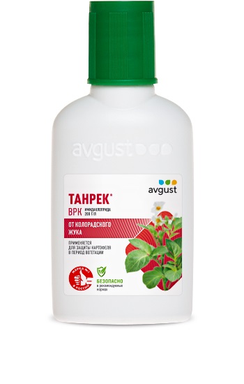 Avgust Танрек– инсектицид системного действия для уничтожения колорадского жука на картофеле на всех стадиях его развития. Препарат поражает нервную систему насекомых при попадании на них раствора или питании обработанным растением. Взрослые жуки и личинки утрачивают способность двигаться, они прекращают питаться, а через 2–3 суток погибают. Картофель после обработки становится несъедобным и для вредителей, прилетевших с соседних территорий. Благодаря повышенной стойкости препарата к смыванию дождевой водой защитный эффект сохраняется до 3 недель.• Обеспечивает надежную защиту от вредителей основных сельскохозяйственных культур в различных условиях их выращивания.
