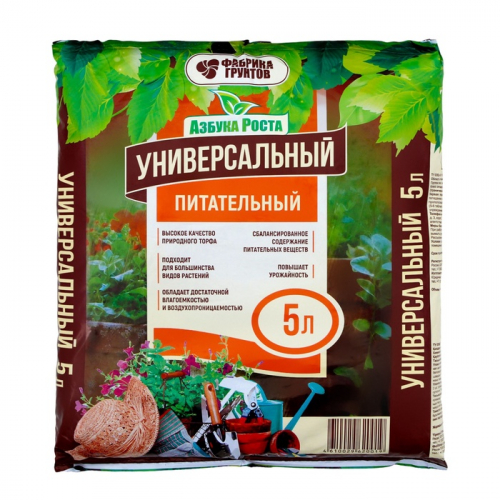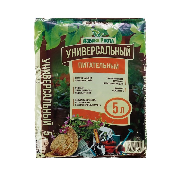 Почвогрунт Универсальный питательный, Азбука Роста, 5 л