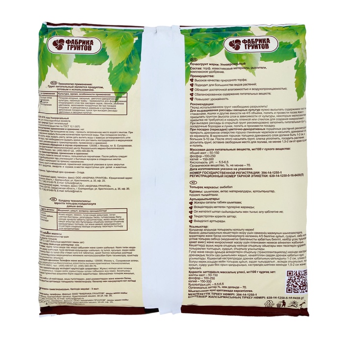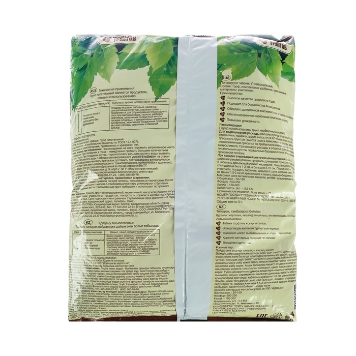 Полностью готовый к применению грунт состоит из высококачественного торфа. Подходит для большинства видов растений, обладает хорошей влагоёмкостью и воздухопроницаемостью. Имеет сбалансированное содержание питательных веществ. Повышает урожайность.