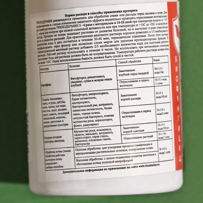 Триходермин - биопрепарат, предназначенный для защиты сельскохозяйственных растений от возбудителей патогенов, распространяющихся через почву и растительные остатки.