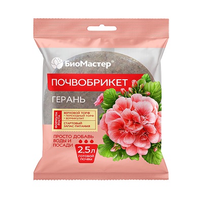 БиоМастер Почвобрикет ГЕРАНЬ (на 2,5 л) 200 гр. / 33шт