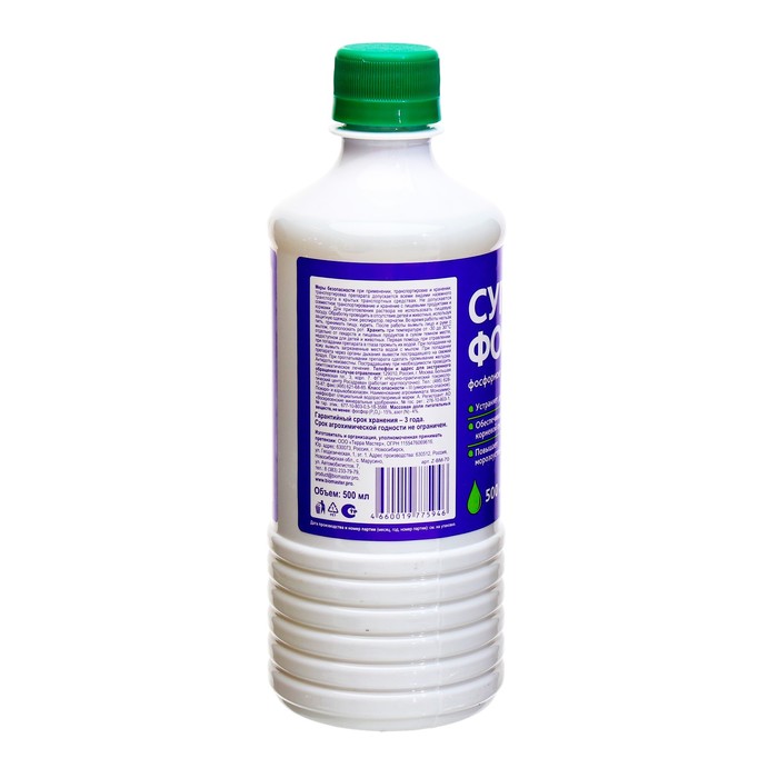 Жидкое концентрированное фосфорное удобрение для подкормок садово-огородных и цветочно-декоративных культур от посадки до сбора урожая. В составе удобрения содержится фосфор в легкоусвояемой форме, что позволяет быстро и эффективно восполнить его дефицит. Фосфор необходим для обменных процессов и жизнеспособности растений, ускоряет рост корней, повышает морозо- и засухоустойчивость, повышает урожайность и улучшает вкус плодов. Жидкий концентрат, удобный для применения, подходит для корневых и внекорневых подкормок, повышает количество и качество урожая.