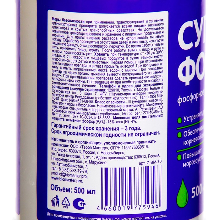 Суперфосфат гель «БиоМастер», минеральное, удобрение, 500 мл