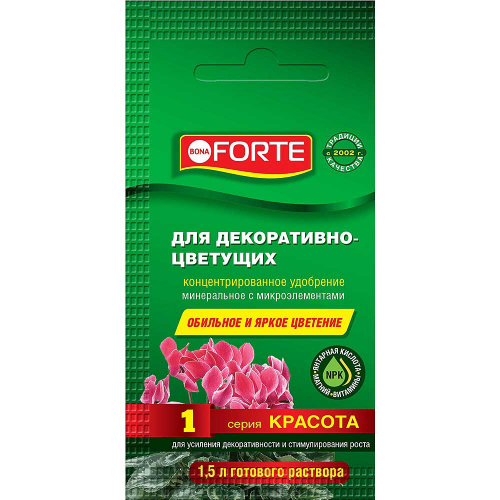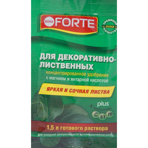 Удобрение создано лабораториями Bona Forte для восстановления истощенной почвы и повышения иммунитета растений. Здоровье - первый и основной шаг к красоте декоративных растений. Удобрение содержит полный комплекс веществ, необходимых для полноценного и сбалансированного питания растений. Подходит для алоказии, диффенбахии, драцены, замиокулькаса, кротона, колеуса, маранты, монстеры, плюща, сансевиерии, фатсии, фикусов, финика, филодендрона, ховеи, юкки и многих других. → Рекомендация Bona Forte: лучший результат дает совместное использование корневых (полив) и внекорневых подкормок (опрыскивание листьев раствором удобрения).