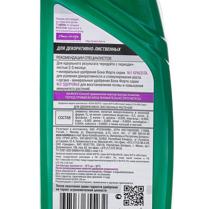 Удобрение для декоративно-лиственных растений Bona Forte 2 в 1, 285 мл