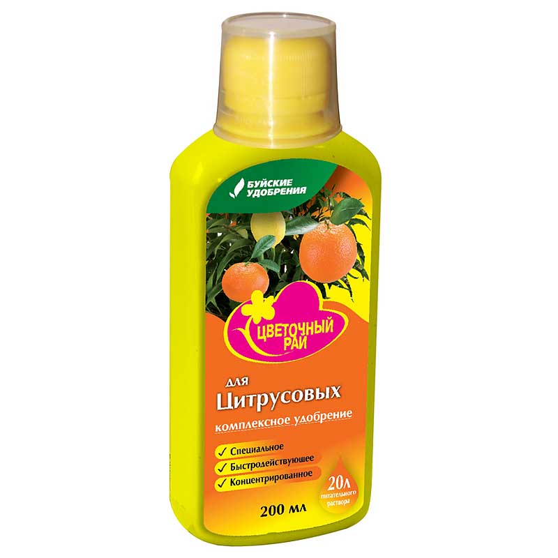 Специальное быстродействующее концентрированное комплексное удобрение для питания цитрусовых растений. Способствует здоровому росту и развитию растений. Стимулирует образование сочной зеленой листвы, цветение и плодообразование.