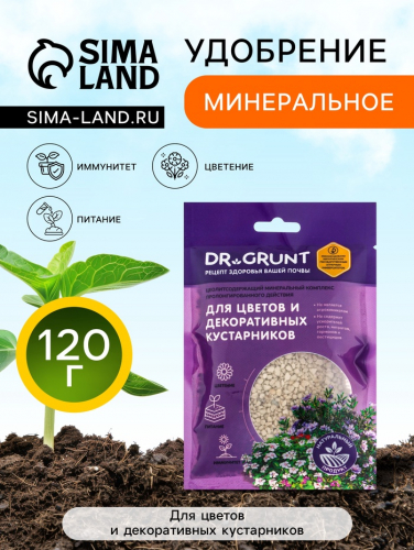 Минеральное удобрение Dr.Grunt для цветов и декоративных кустарников — это специализированный состав для декоративных растений. Он помогает добиться продолжительного цветения, насыщенного цвета листьев и устойчивости садовых и комнатных культур.