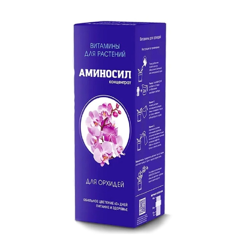 Аминосил для орхидей– первый в России комплекс поливитаминов в хелатной форме, разработанный специально для орхидей. Применяется для корневой подкормки. Удобрение легко усваивается растениями и уже через 1 месяц полностью восполняет недостающие макро- и микроэлементы, а также аминокислоты, необходимые для гармоничного развития, роста и сильного естественного иммунитета растений. Удобрение обеспечивает пышное цветение, насыщает растение, субстрат и почву всеми необходимыми витаминами, укрепляет здоровье и иммунитет растения.• Удобрение содержит полный комплекс веществ, необходимых для полноценного и сбалансированного питания растений.