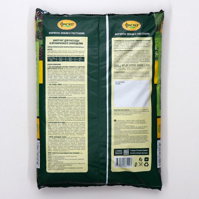 Грунт для рассады и органического земледелия Фаско с биогумусом 10л