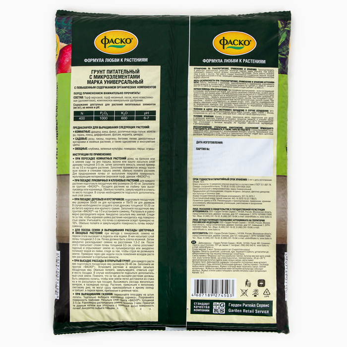 Применение: для выращивания комнатных, садовых декоративных и плодовых культур, а также закладки газонов.