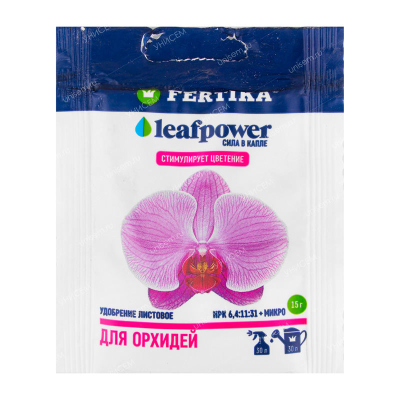 Fertika Leaf Power для орхидей– комплексное водорастворимое минеральное удобрение с микроэлементами. Применяется для корневой и внекорневой подкормки растений различных родов орхидей: фаленопсиса, цимбидиума, ванды, дендробиума, каттлеи и других. Препарат увеличивает количество цветоносов и бутонов, способствует длительному и насыщенному цветению, содержит микроэлементы в хелатной форме.• Удобрение содержит полный комплекс веществ, необходимых для полноценного и сбалансированного питания растений.
