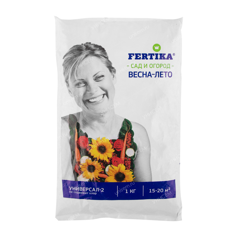 Fertika Универсальное (весна-лето)– комплексное минеральное гранулированное удобрение с макроэлементами. Применяется в качестве основного внесения при выращивании овощных, зеленых, плодово-ягодных культур, декоративных, хвойных деревьев и кустарников. Препарат не содержит хлор, обеспечивает быстрый эффект, гарантирует хороший рост и развитие растений, увеличивает урожайность и качество выращиваемых культур, повышает эффективность использования питательных элементов за счет равномерного внесения и пролонгированного действия.• Удобрение содержит полный комплекс веществ, необходимых для полноценного и сбалансированного питания растений.