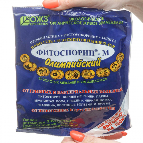 Фитоспорин-М-К Олимпийский нано-гель - экологически чистый препарат выпущенный в виде нано-геля. Предназначен для огородных, садовых, комнатных, оранжерейных растений. Защищает от комплекса грибных, бактериальных болезней, а также непогодных и других стрессов. Состав: содержит природные защитные фитобактерии, имеет наличие гумата калия, обогащен микроэлементами: Mo, Se, Li, S, Co, Mn, Cu, Zn, Ni, Cr. Преимущества: Обеспечивает растениям защиту от стрессов и дает полноценнейшее питание.