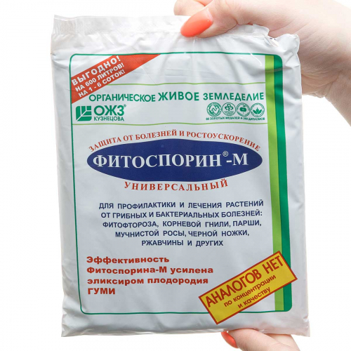 Фитоспорин эффективен против широкого спектра грибных и бактериальных заболеваний, в том числе против парши, увядания, черной ножки, фитофтороза, плесневения семян, корневых гнилей, гнилей всходов, мучнистой росы, бурой ржавчины, пыльной головни, пузырчатой головни, альтернариоза, ризоктониоза, фузариоза, септориоза и многих других.