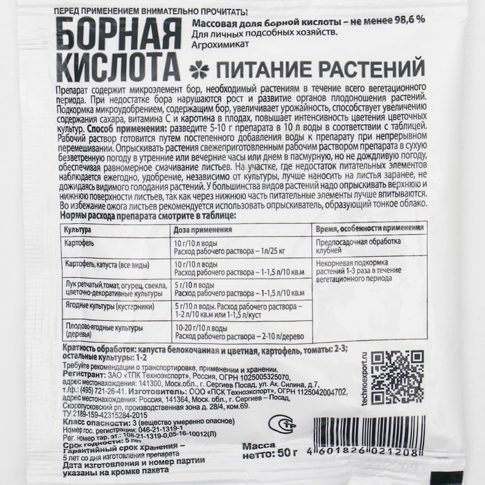 Микроудобрение "Борная кислота", Грин Бэлт, 50 г
