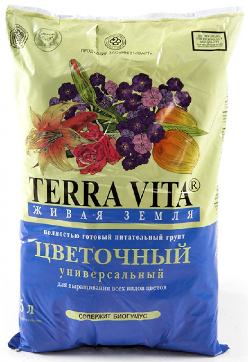 Полностью готовый питательный грунт Терра Вита применяется для посадки и пересадки всех видов цветочных и декоративных культур, выращивания рассады и укоренения черенков.