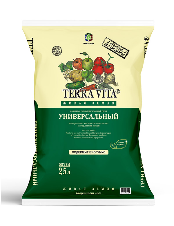 Полностью готовый питательный грунт Терра Вита применяется для выращивания всех видов овощных, ягодных культур, цветов и рассады. Улучшает всхожесть семян, приживаемость рассады.