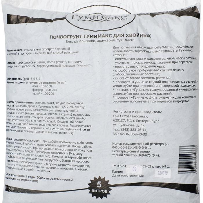 Почвогрунт Гумимакс для хвойных 5 литров