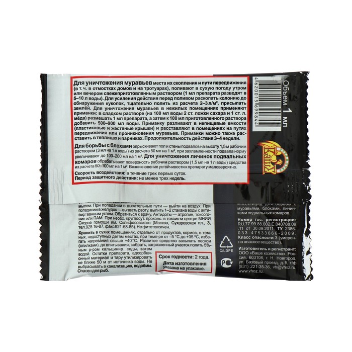 Инсектицид широкого спектра действия "Ваше хозяйство", "Муратокс", ампула, 1 мл